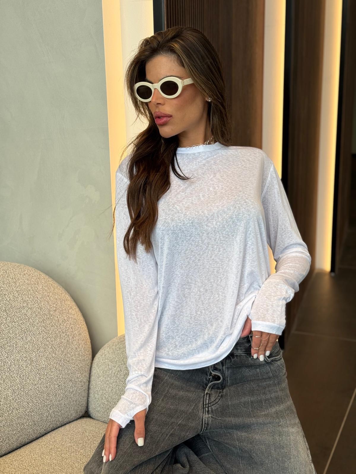 חולצת בייסיק ארוכה מבד שקפקף ונעים, בגזרת אוברסייז עם שרוולים ארוכים וכפפות – מושלמת לשכבות וללוק יומיומי מלא סטייל.