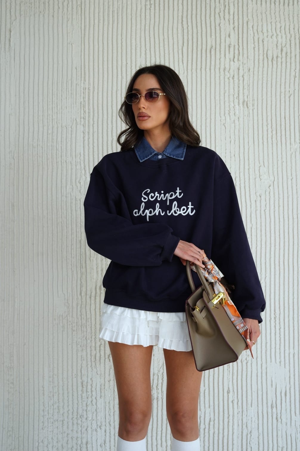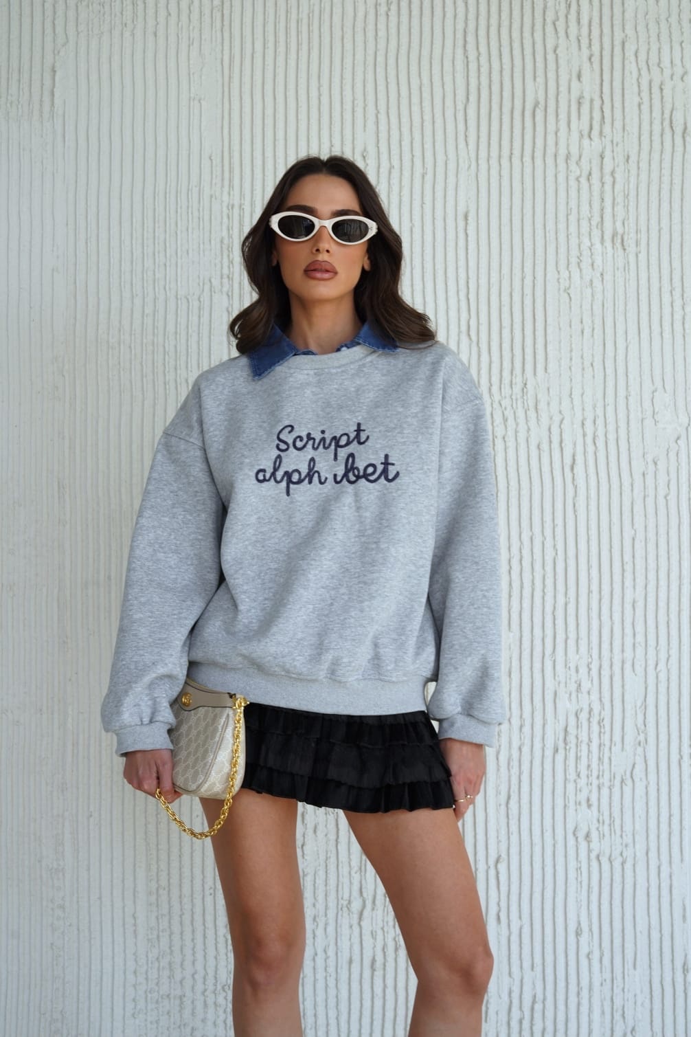חולצת כיתוב צווארון ג׳ינס