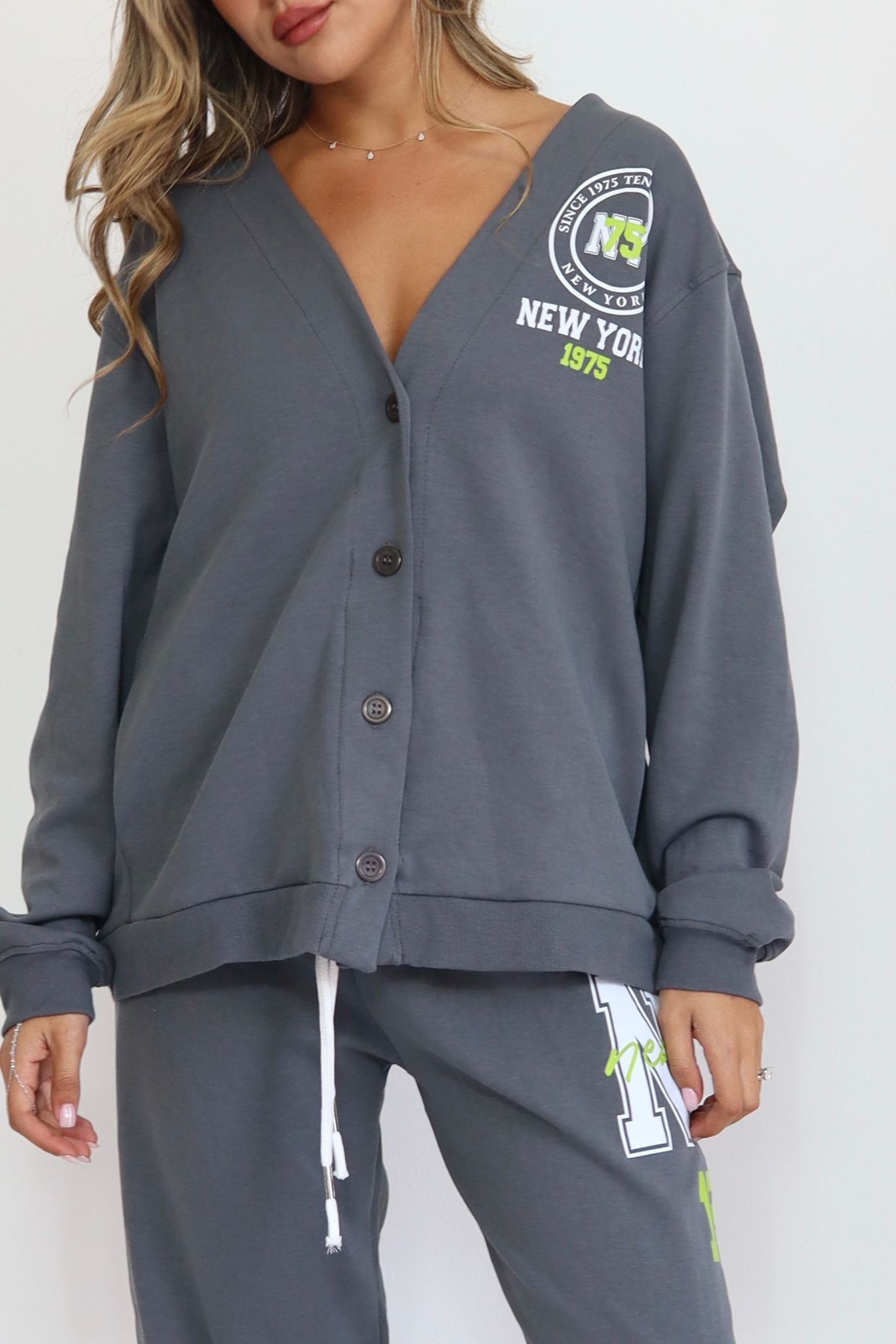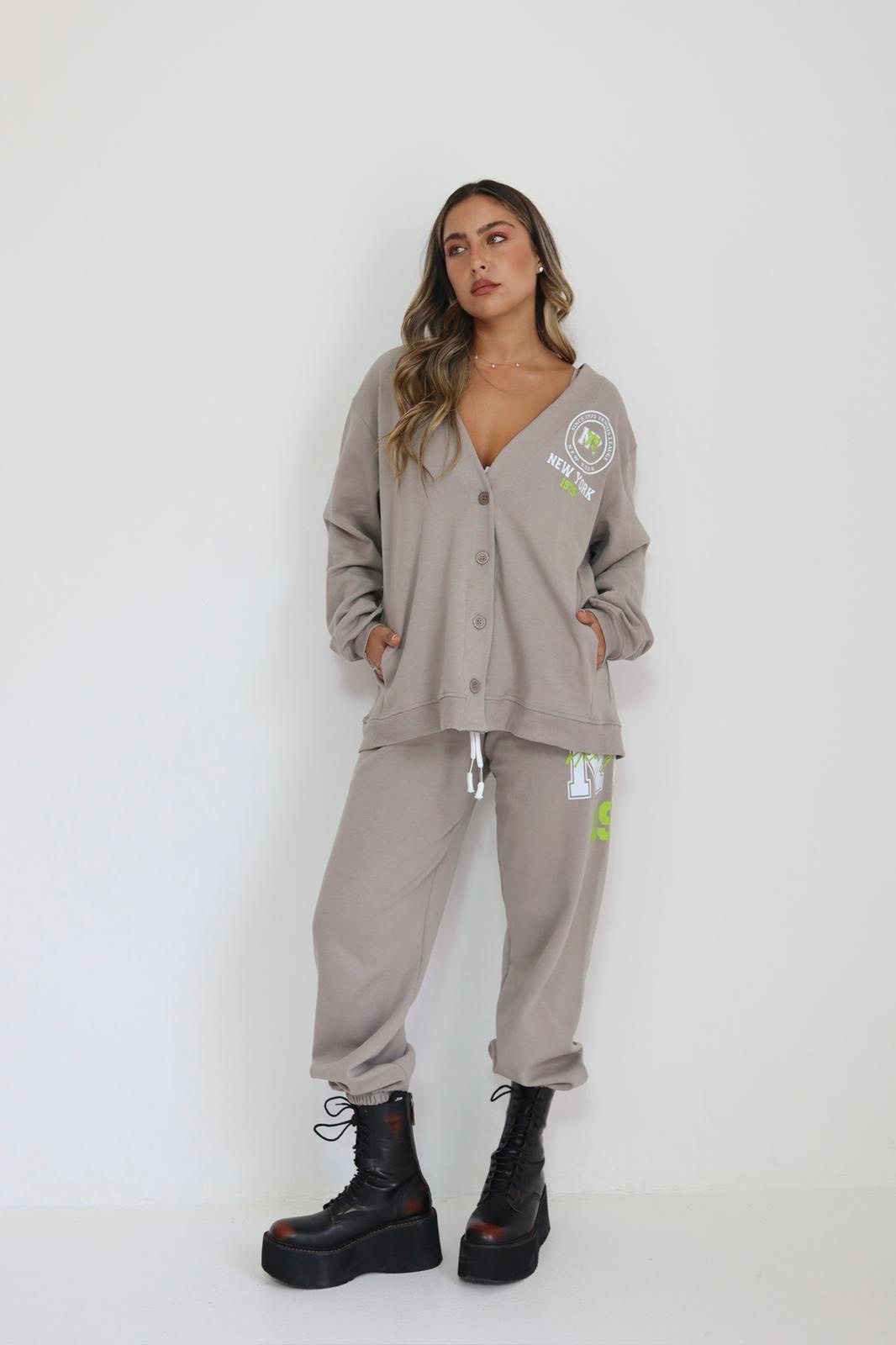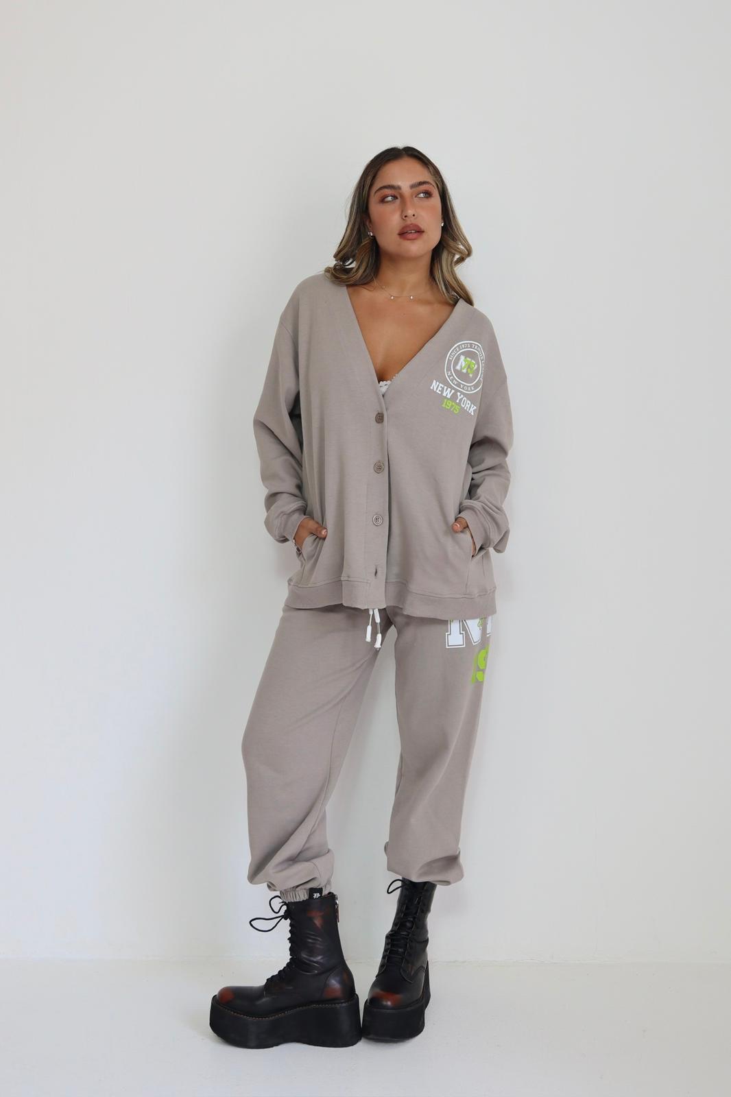 חליפת טרנינג מושלמת בלוק ניו-יורקי עם הדפסים מודגשים בגווני לבן וירוק ניאון. כוללת קפוצ’ון עם רוכסן ומכנס עם גומי ושרוך להתאמה מושלמת. סטייל יומיומי ונוח בווייב אורבני קולי.