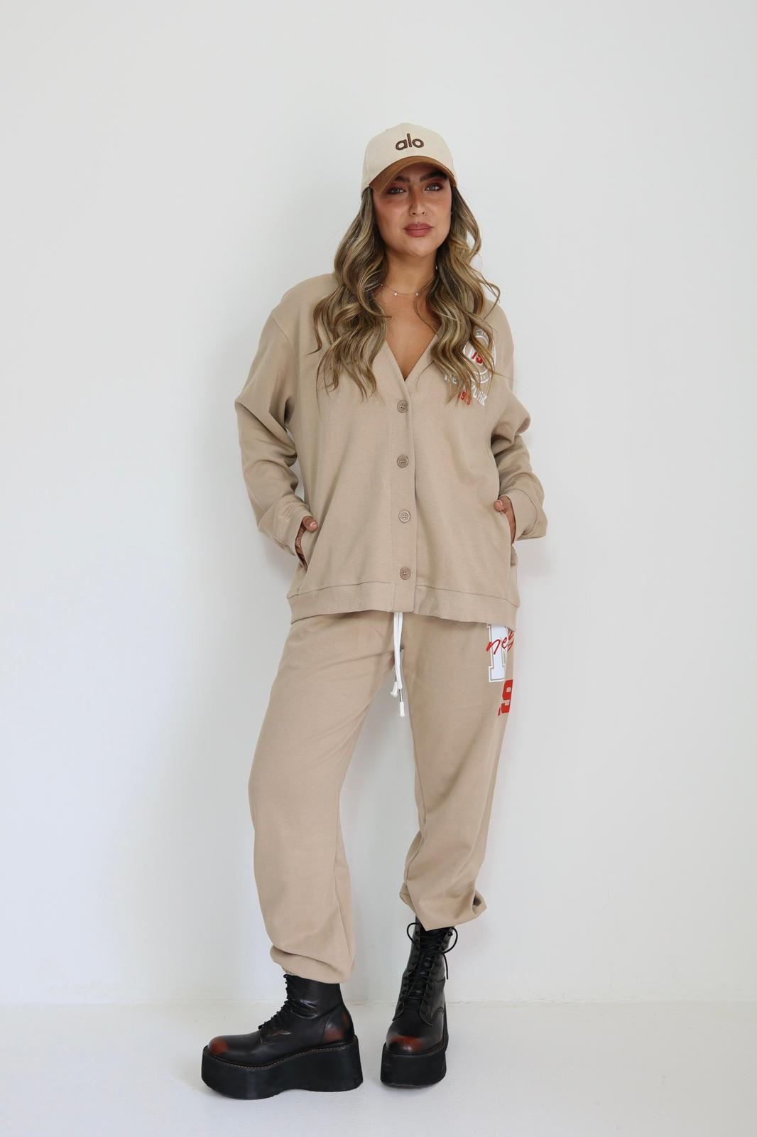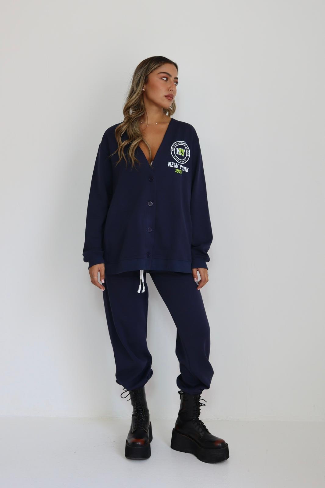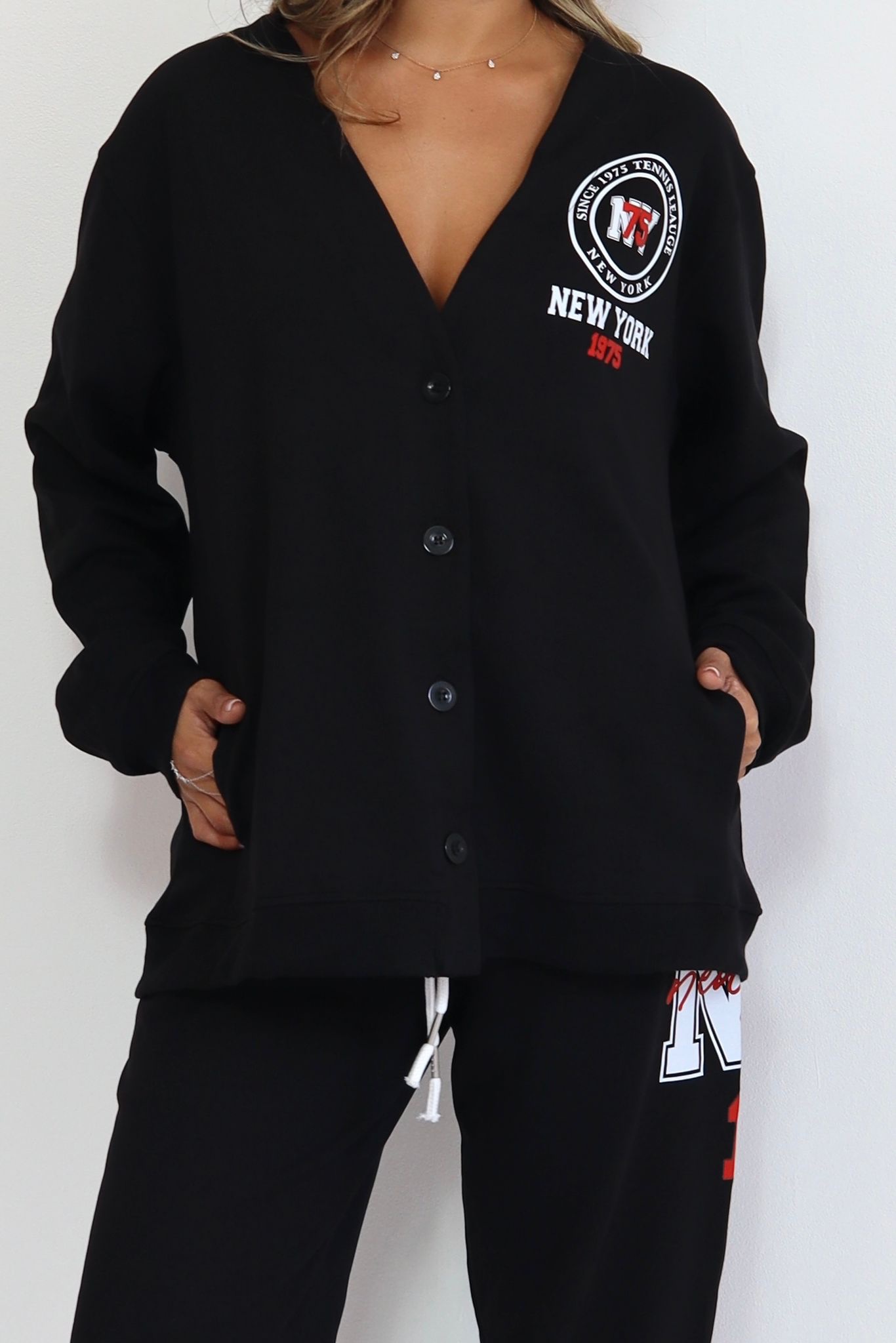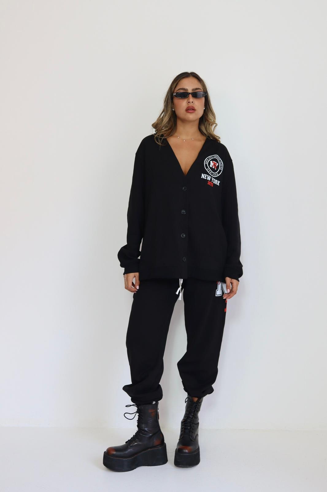 חליפת טרנינג מושלמת בלוק ניו-יורקי עם הדפסים מודגשים בגווני לבן וירוק ניאון. כוללת קפוצ’ון עם רוכסן ומכנס עם גומי ושרוך להתאמה מושלמת. סטייל יומיומי ונוח בווייב אורבני קולי.
