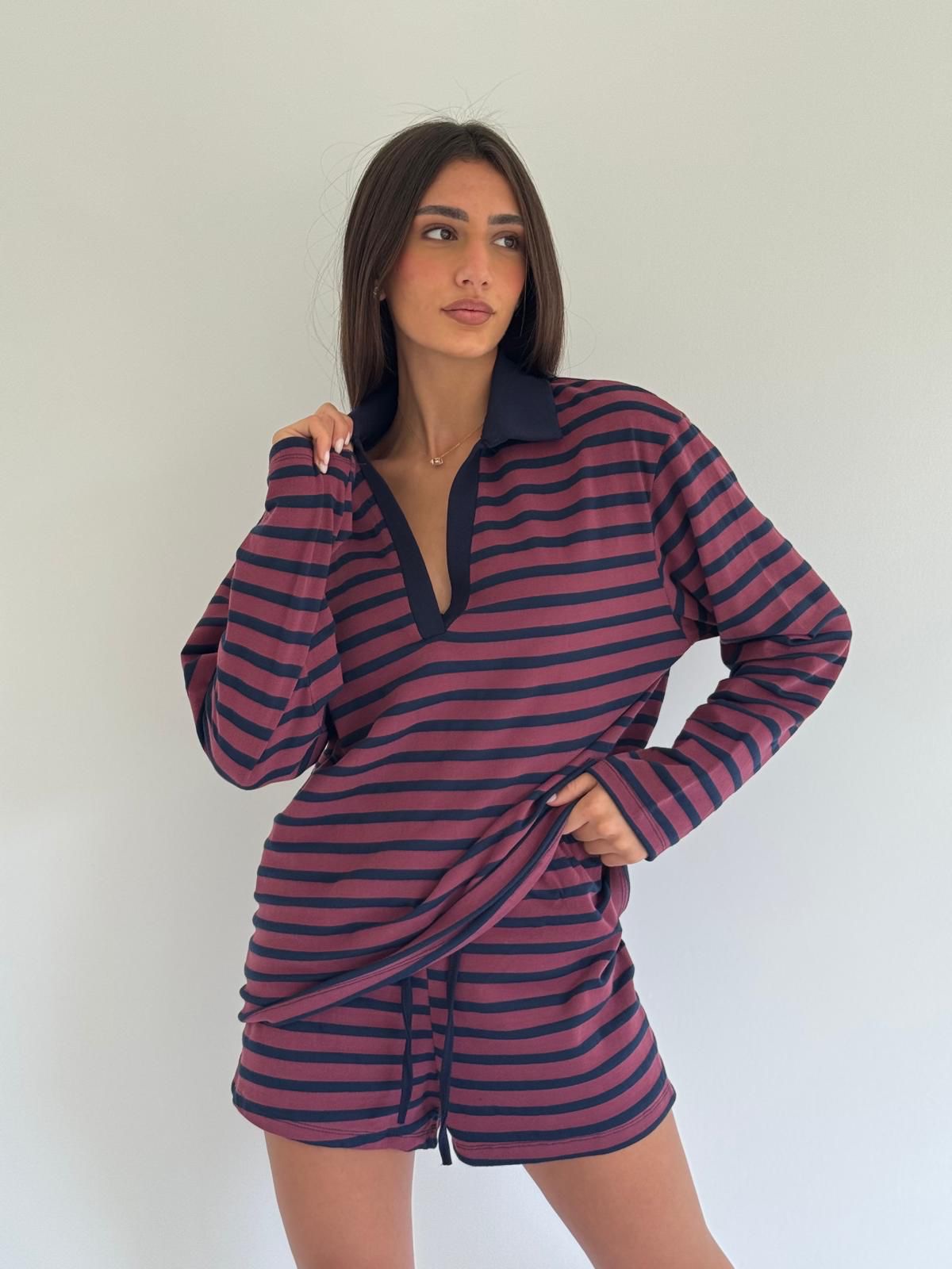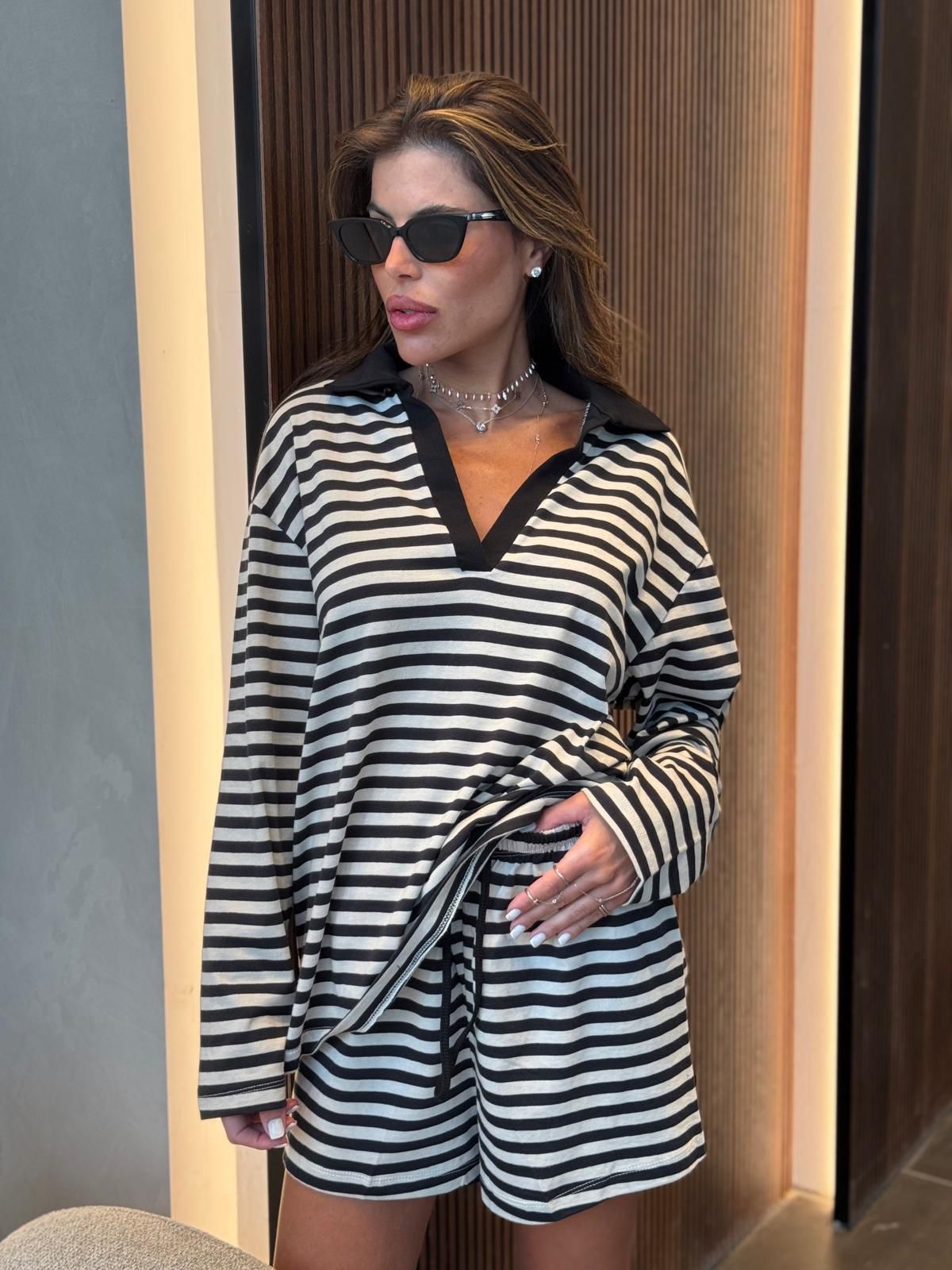 חליפת פסים קלילה ליום-יום, בגזרה מחמיאה ומשוחררת שמשלבת סטייל עם נוחות. עשויה מבד נושם ונעים, עם דוגמת פסים קלאסית שתמיד באופנה. מושלמת לעבודה, לסידורים או ליציאה קלילה – לוק מתוחכם במינימום מאמץ