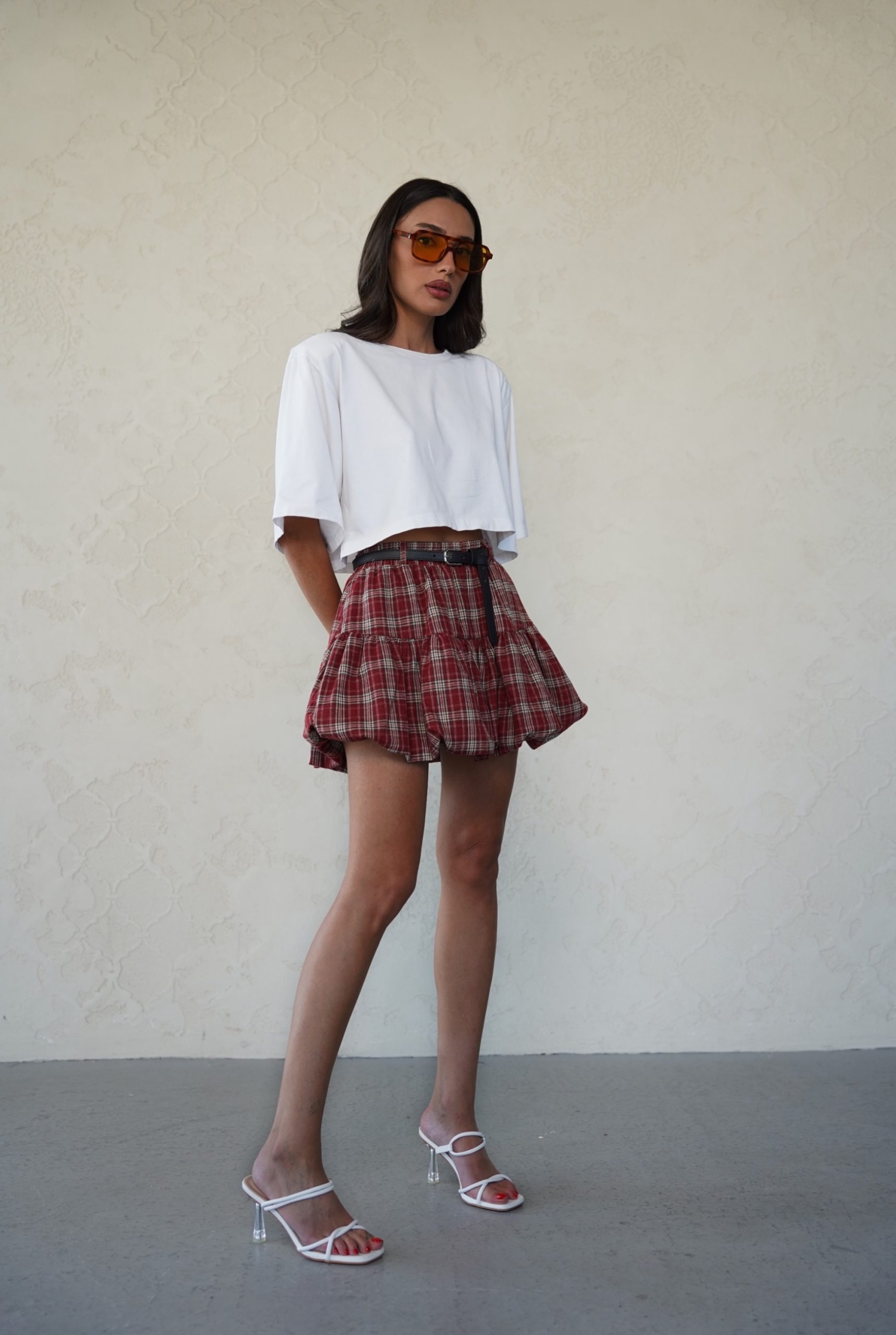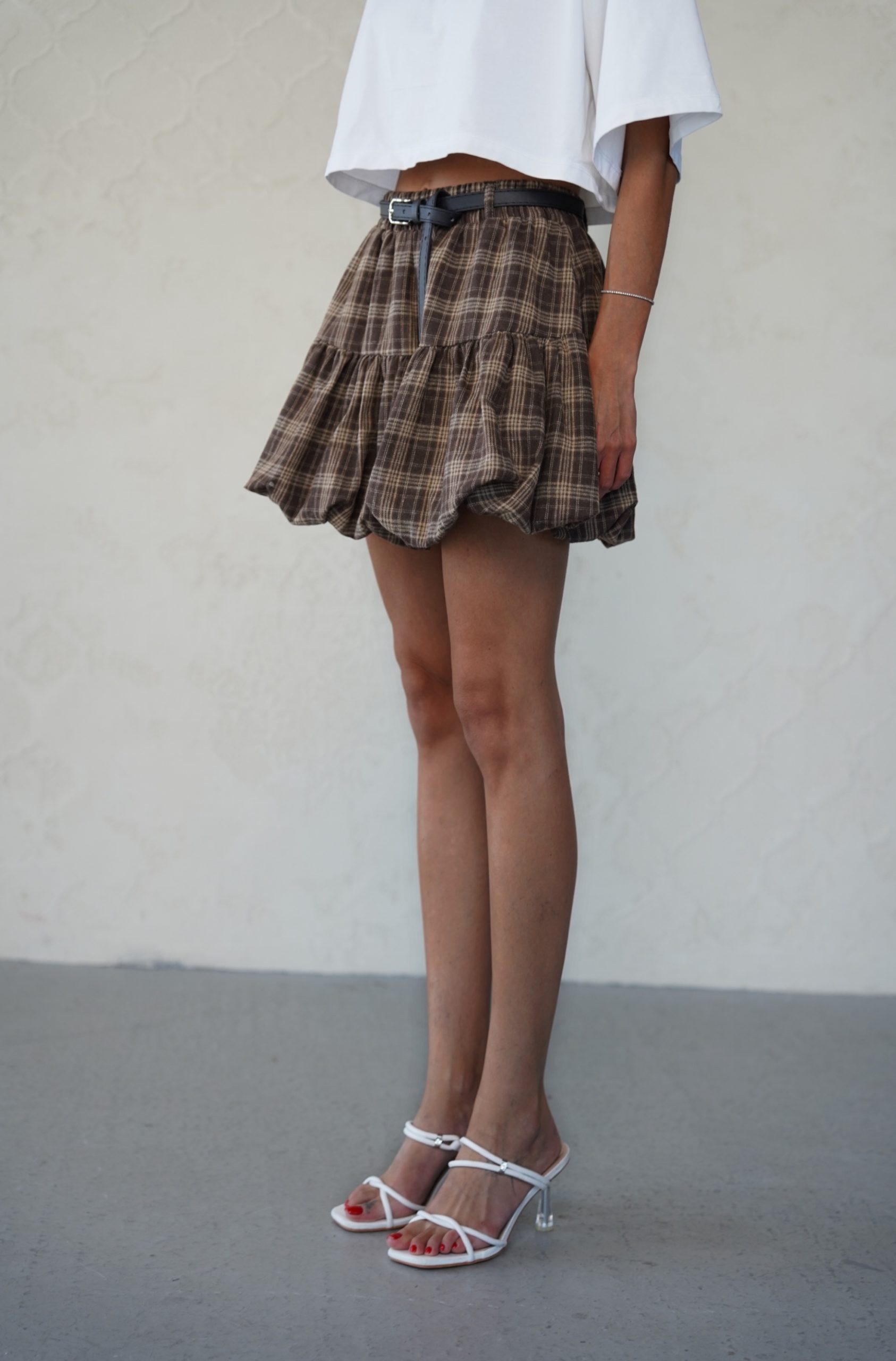חצאית משבצות חגורה