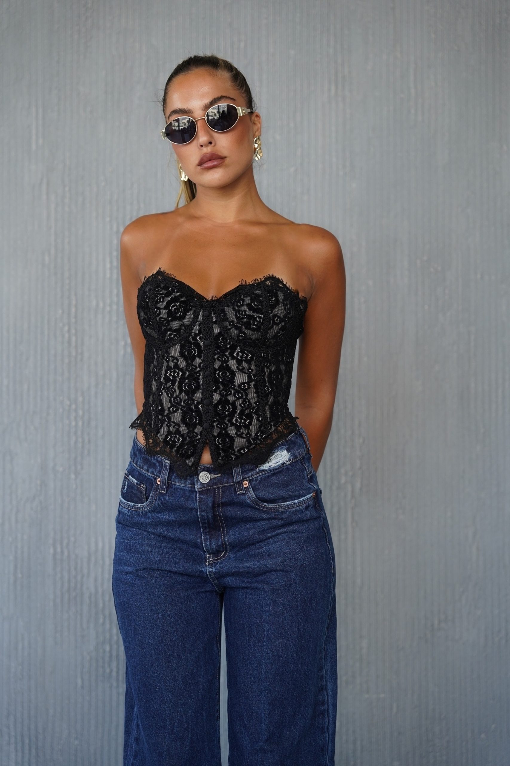 מחוך תחרה – פריט נשי ומחמיא בגזרה מחטבת, עשוי תחרה עדינה למראה רומנטי ואלגנטי. משלב בין קלאסיות נועזת לאלמנטים מודרניים, ומתאים כשכבה עליונה או כתוספת מושלמת ללוק ערב מרשים