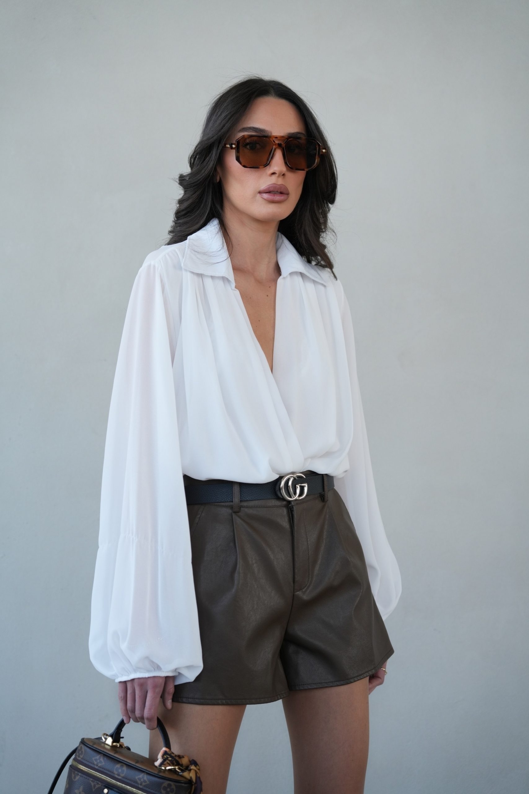 שורט עור חגורה